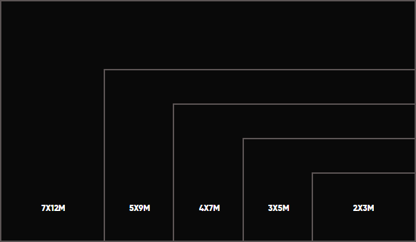 Ekrano moduliai yra tik 0,5×0,5m., o tai leidžia pasirinkti skirtingus ekrano dydžius (nuo 2×3,5m. iki 7,5x13m.).